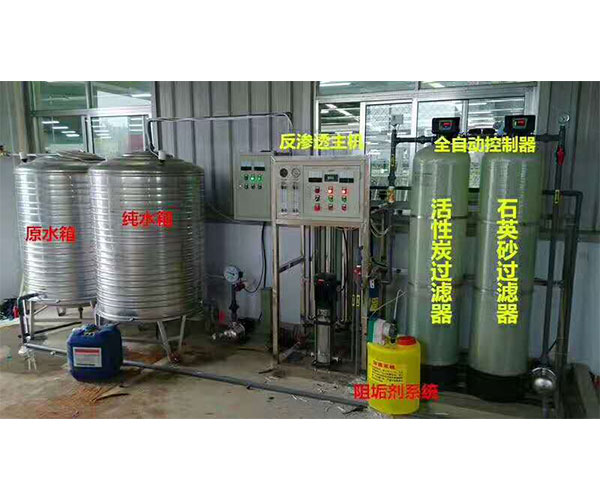出水量1噸/小時的反滲透純凈水設備可滿足效率高的灌裝線。常用于酒廠,也適用于其他需要純凈水的生產、生活領域。