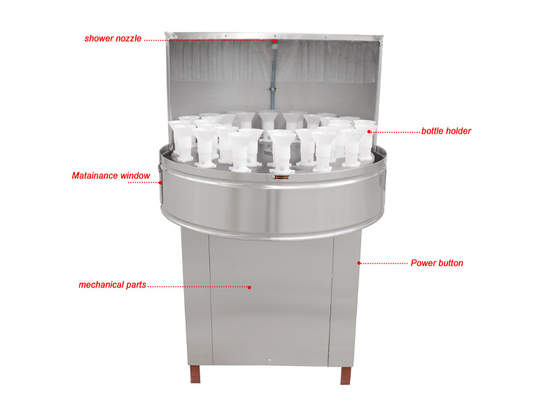 一、瓶子外壁采用噴頭噴淋,噴淋壓力可通過噴淋開關調整。(本機外接水源壓力需高于0.1Mpa,若低于此壓力,需自備加壓泵。)